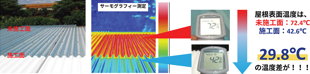 工場・倉庫に遮熱・断熱塗装をすることで、屋根の温度を30%低下させることができる効果が期待できます。